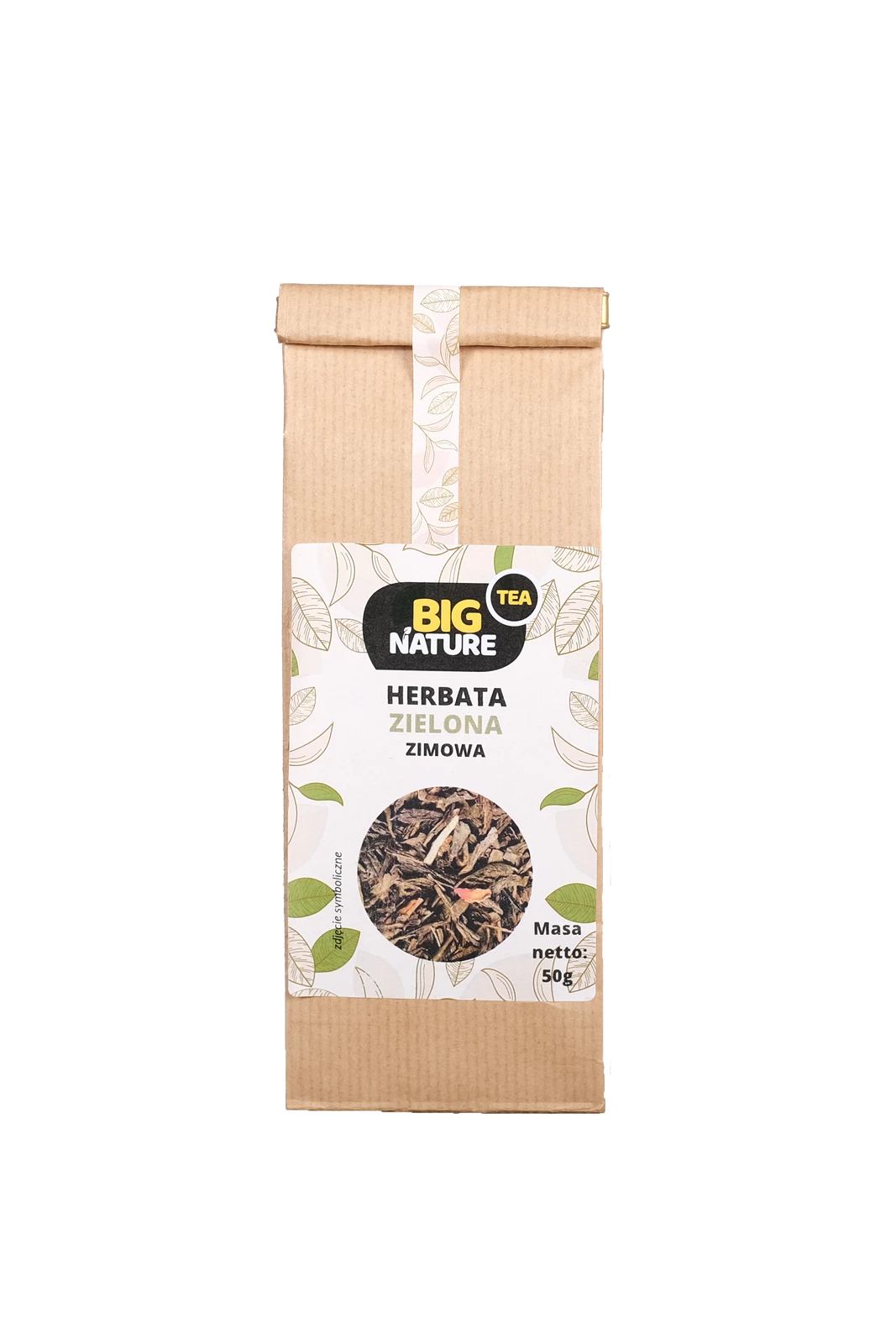 Opis: Opakowanie zawiera 50g zielonej herbaty "Zimowa".