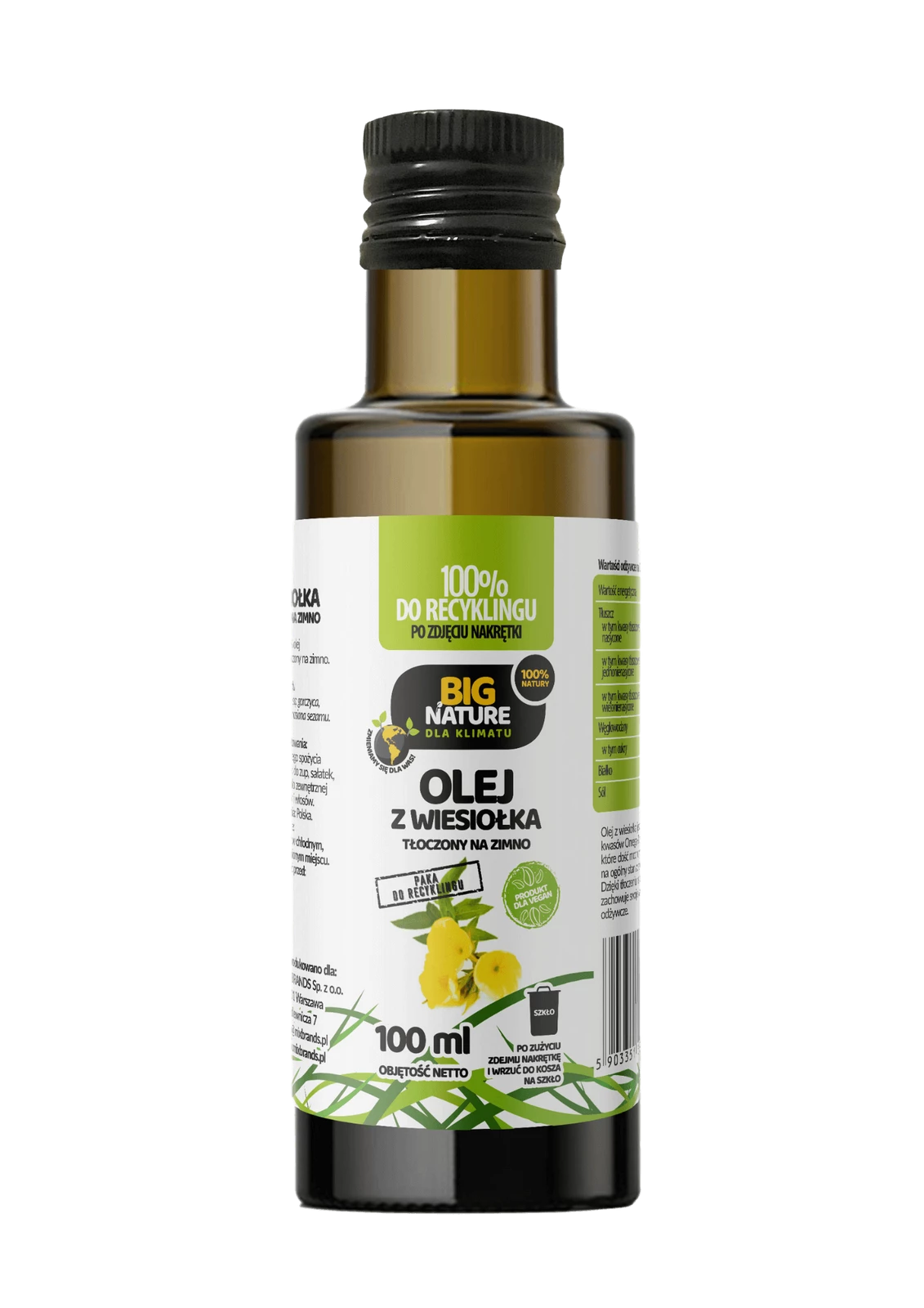 Opis: Opakowanie zawiera 100ml oleju z wiesiołka tłoczonego na zimno.