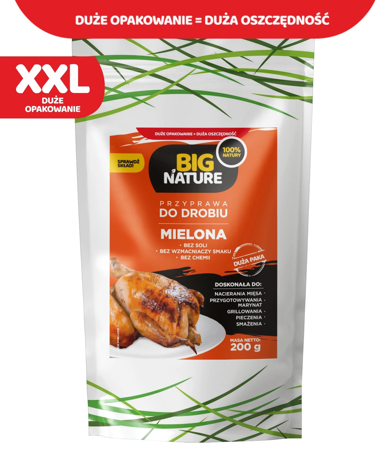 Składniki: papryka słodka, czosnek, gorczyca biała, cebula, bazylia, oregano, papryka wędzona ostra, kolendra, tymianek, majeranek, kmin rzymski, pieprz czarny.