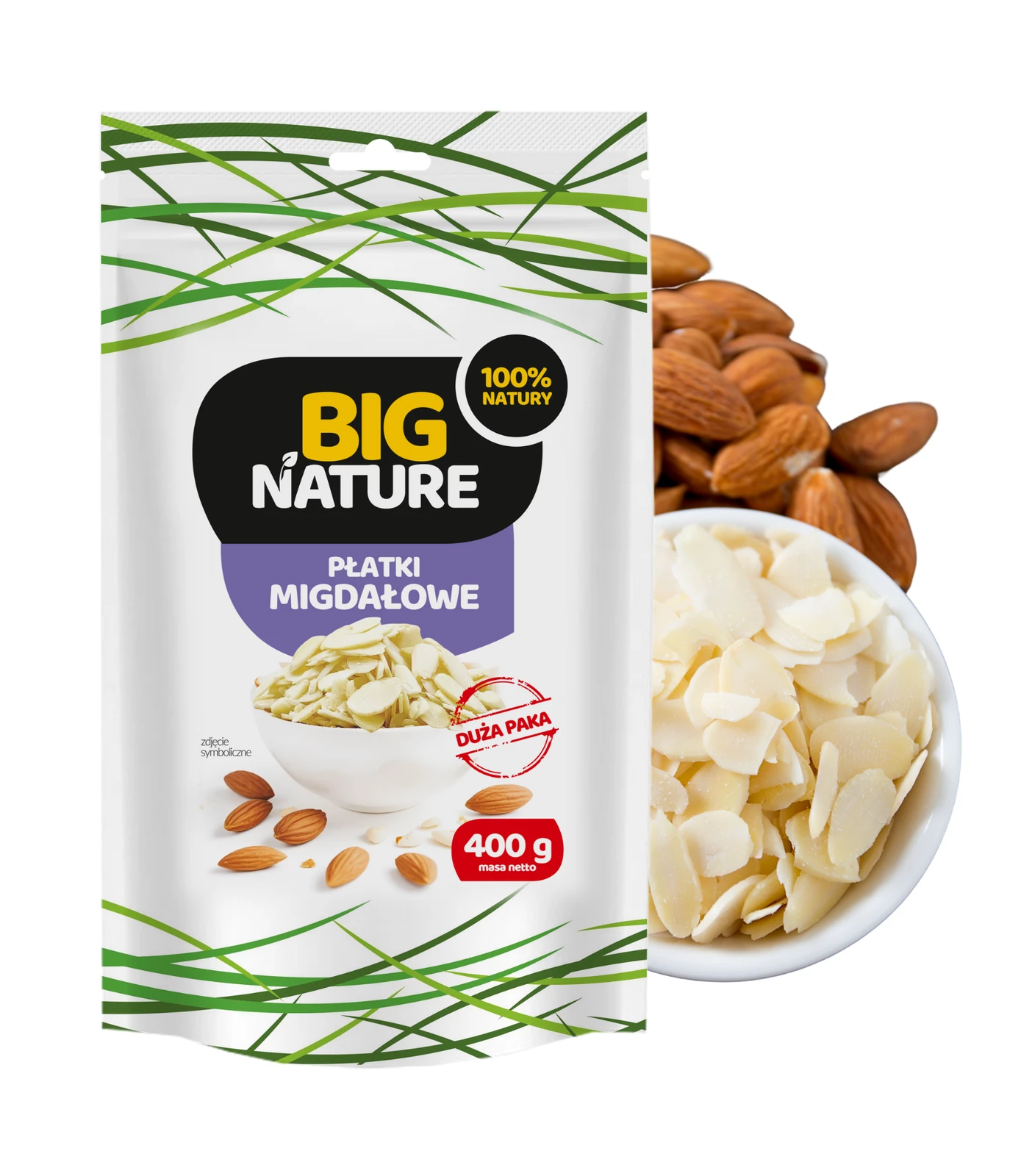 Opis: Opakowanie zawiera 400g płatków migdałowych.
