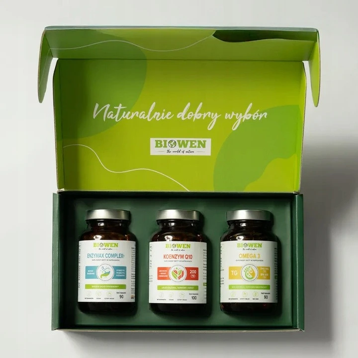 Zestaw dla Mamy to wyjątkowa kompozycja trzech pełnowymiarowych suplementów marki Biowen: Omega 3, Enzymax Complex oraz Koenzym Q10. To idealny prezent, który wspiera zdrowie układu pokarmowego, krążenia oraz codzienną energię i samopoczucie. Eleganckie opakowanie czyni go doskonałym wyborem na Dzień Matki, urodziny lub każdą okazję, w której chcesz podarować swojej mamie troskę i wdzięczność.