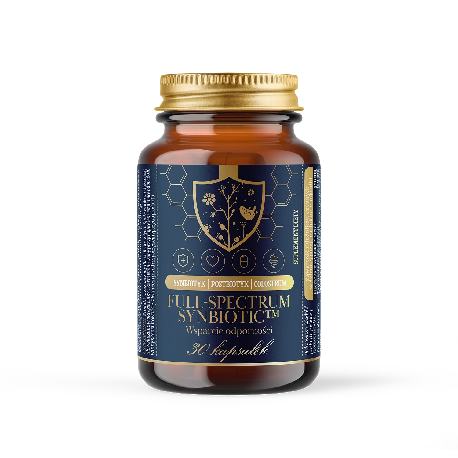 - FULL SPECTRUM SYNBIOTIC™ to innowacyjny synbiotyk nowej generacji, który łączy 289 miliardów CFU probiotyków z naturalnymi immunomodulatorami, prebiotykami i ekstraktami roślinnymi.