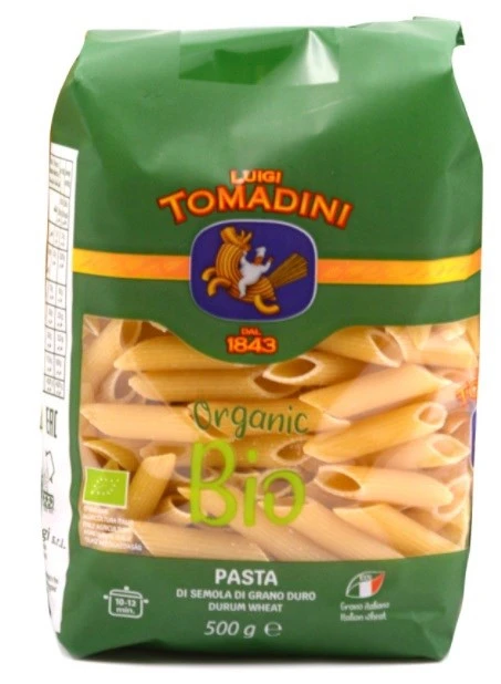 Ekologiczny makaron penne wytworzony w 100% z włoskiej pszenicy durum. SKŁADNIKI: mąka z PSZENICY durum BIO, woda.