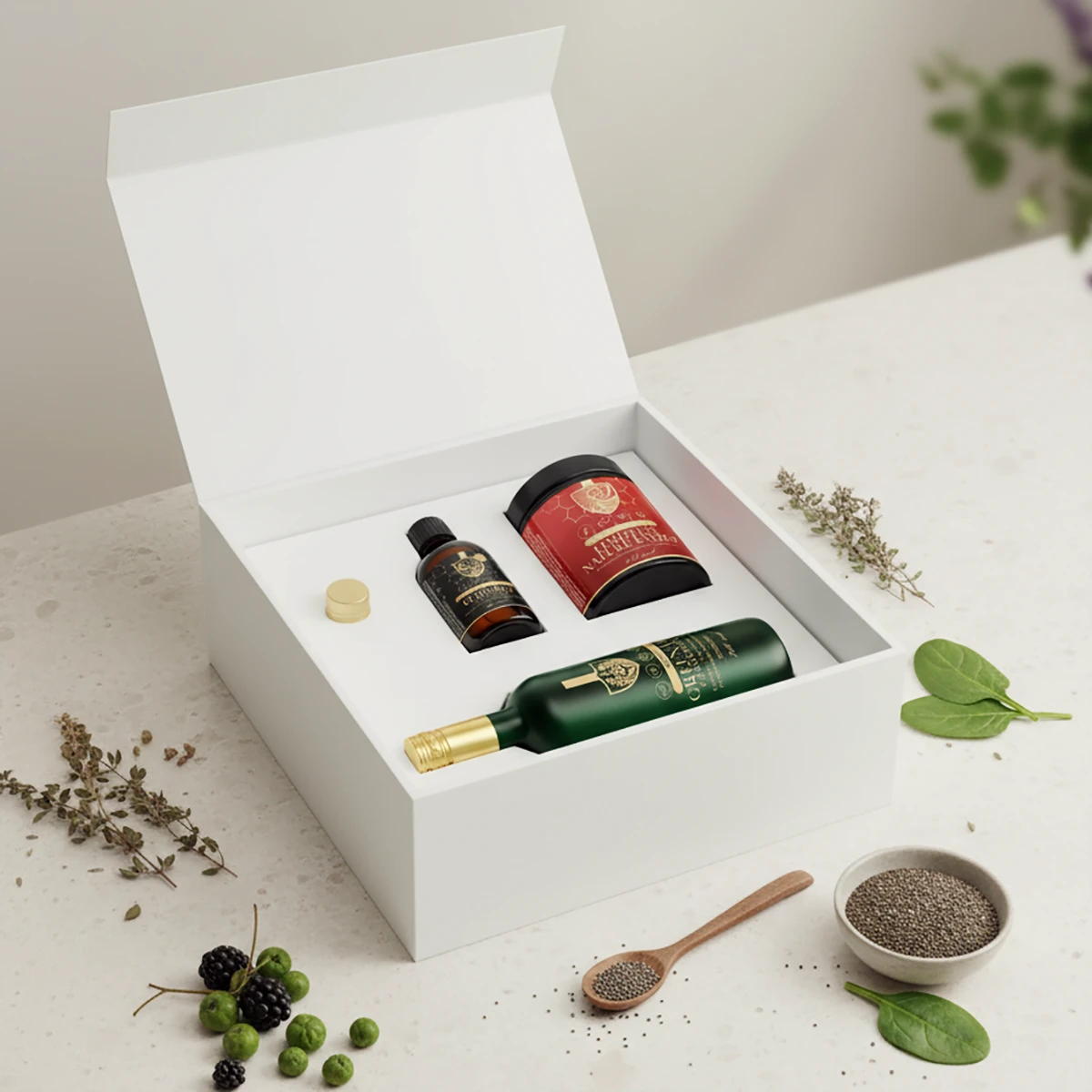 Wybierając Golden 4 Box, otrzymujesz cztery zaawansowane formuły płynne o wysokiej biodostępności, oparte na składnikach z udokumentowanym działaniem, zamknięte w eleganckich, szklanych butelkach chroniących składniki przed światłem.