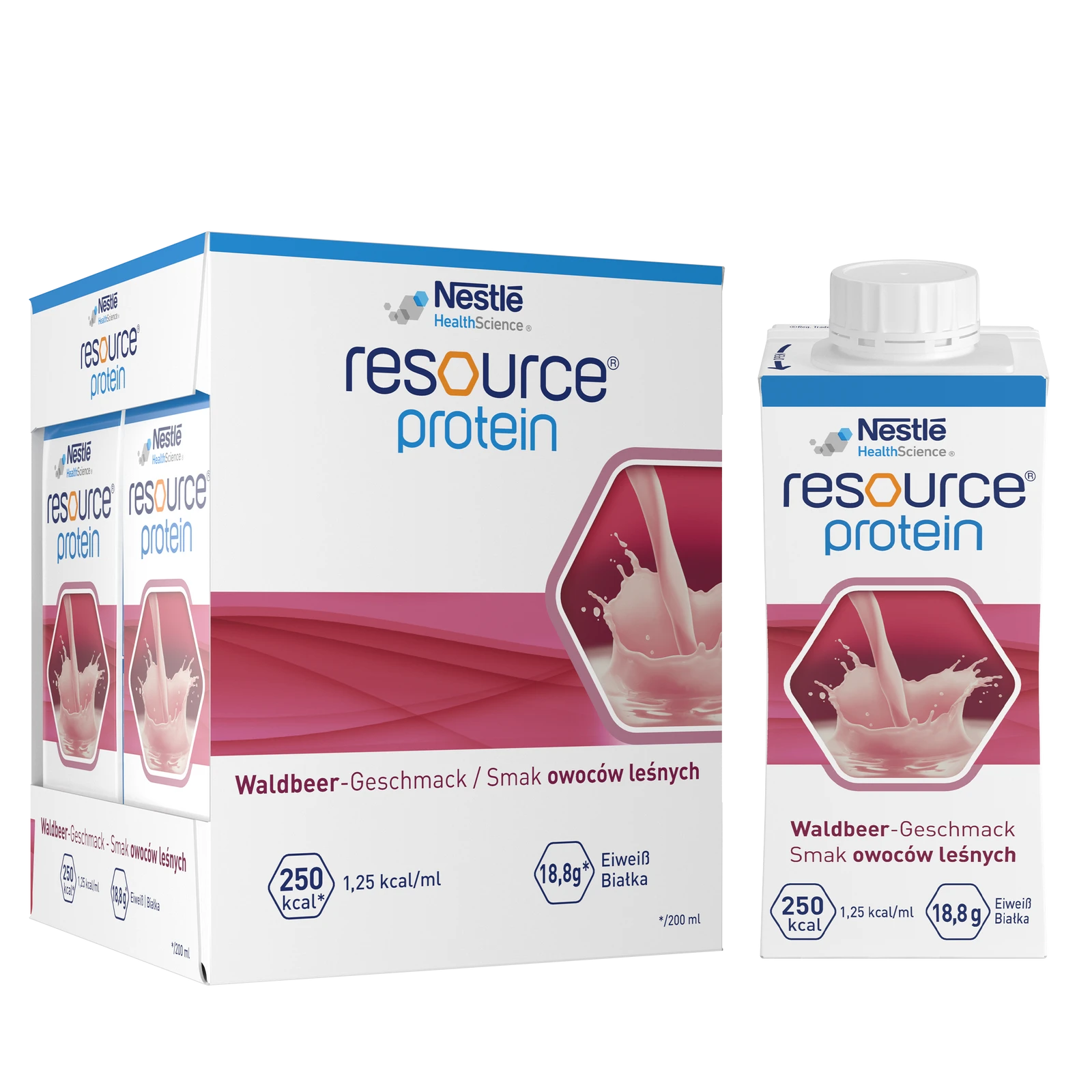 Dietetyczny środek spożywczy specjalnego przeznaczenia medycznego. RESOURCE Protein to kompletna pod względem odżywczym, wysokobiałkowa dieta w płynie dla osób ze zwiększonym zapotrzebowaniem na białko i energię. Może być stosowany jako wsparcie żywieniowe lub – zgodnie z zaleceniem lekarza – jako jedyne źródło pożywienia.