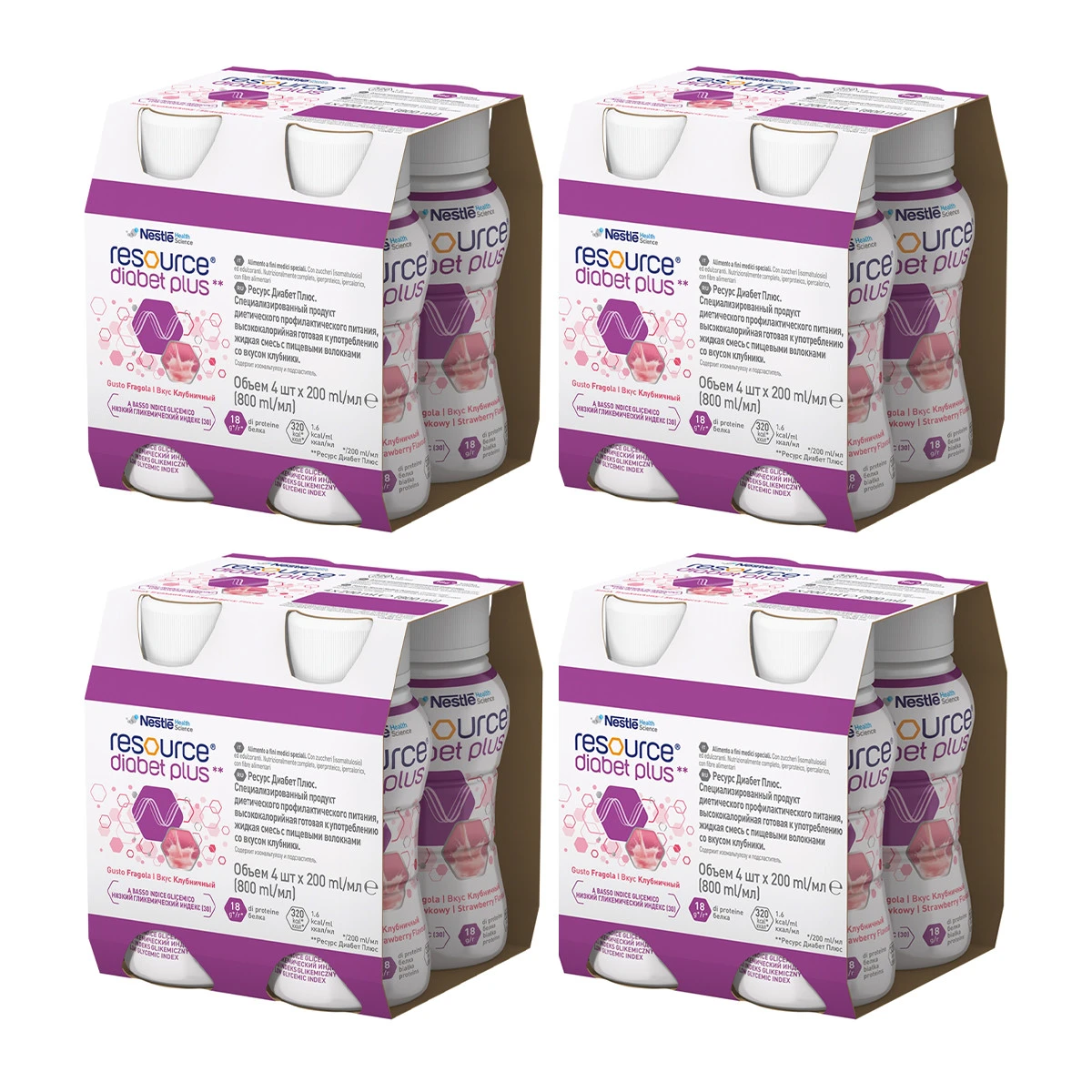 Zestaw 4x RESOURCE Diabet Plus smak truskawka 4 x 200ml
