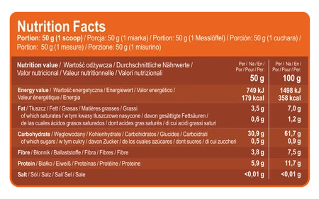 Forma instant zapewnia wyjątkową wygodę – produkt nie wymaga gotowania, łatwo się miesza, nie tworzy grudek i pozwala uzyskać kremową konsystencję. To idealna baza do śniadań, posiłków okołotreningowych oraz zdrowych przekąsek. Możesz wykorzystać go także w koktajlach i wypiekach.