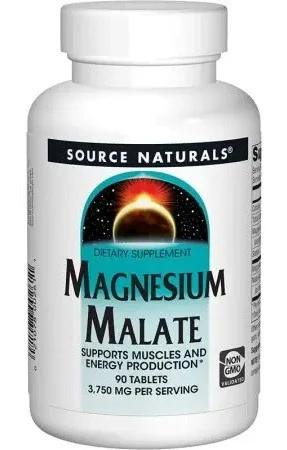 - Source Naturals Magnesium Malate to suplement diety w tabletkach, zawierający magnez w formie trójwodnego jabłczanu magnezu oraz kwas jabłkowy. Forma ta charakteryzuje się dobrą przyswajalnością i jest stosowana w suplementacji wspierającej mięśnie.