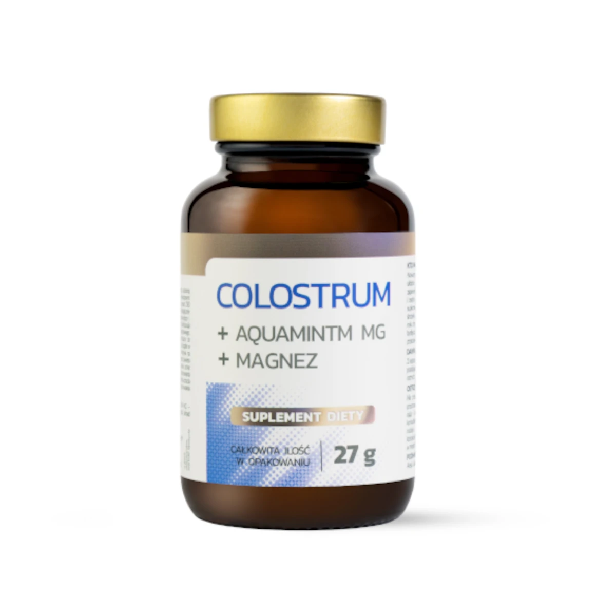 COLOSTRUM + Magnez zawiera suszoną siarę bydlęcą (colostrum) oraz magnez pochodzący z Aquamin™ MG (morski kompleks mineralny ze zmineralizowanych wodorostów Lithotamnion sp.). Produkt przeznaczony jest do uzupełniania diety w magnez.