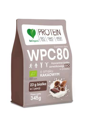- BeOrganic BIO WPC 80 to wysokiej jakości koncentrat białka serwatkowego w proszku, otrzymywany z mleka pochodzącego z ekologicznych gospodarstw.