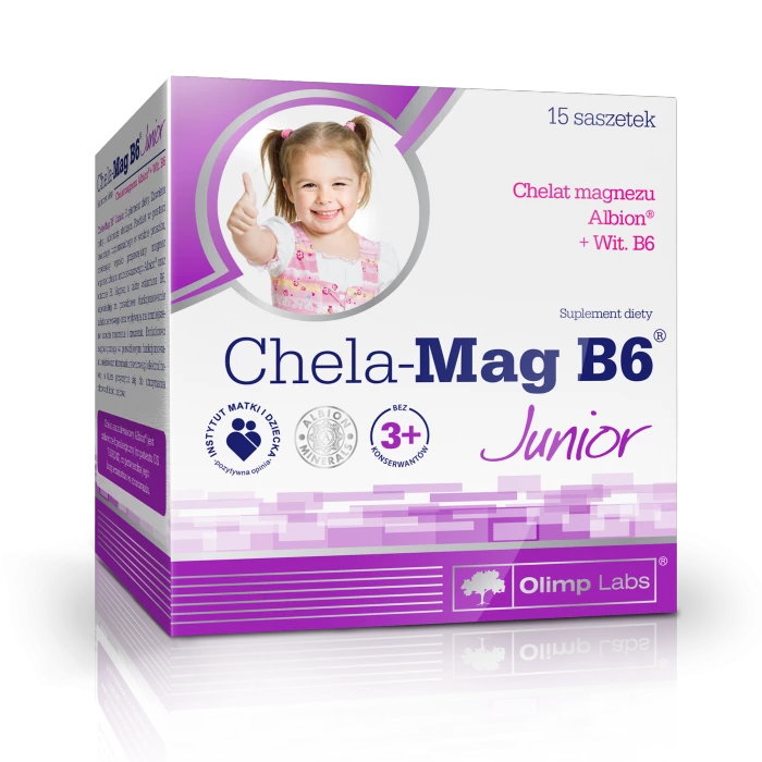Chela-Mag B6® Junior jest jedynym na rynku preparatem magnezowym dla dzieci, zawierającym wysoko przyswajalną i hipoalergiczną formę magnezu w postaci chelatu aminokwasowego Albion® (diglicynian magnezu), wzbogaconą witaminą B6, która współpracuje z magnezem w procesach metabolicznych.