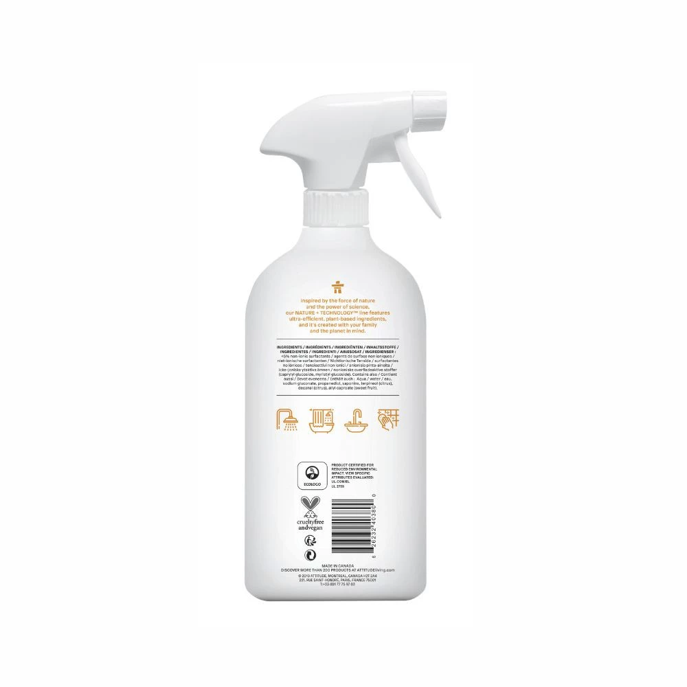 Attitude NATURE+, Spray do czyszczenia kabiny prysznicowej o zapachu skórki cytrusowej, 800 ml