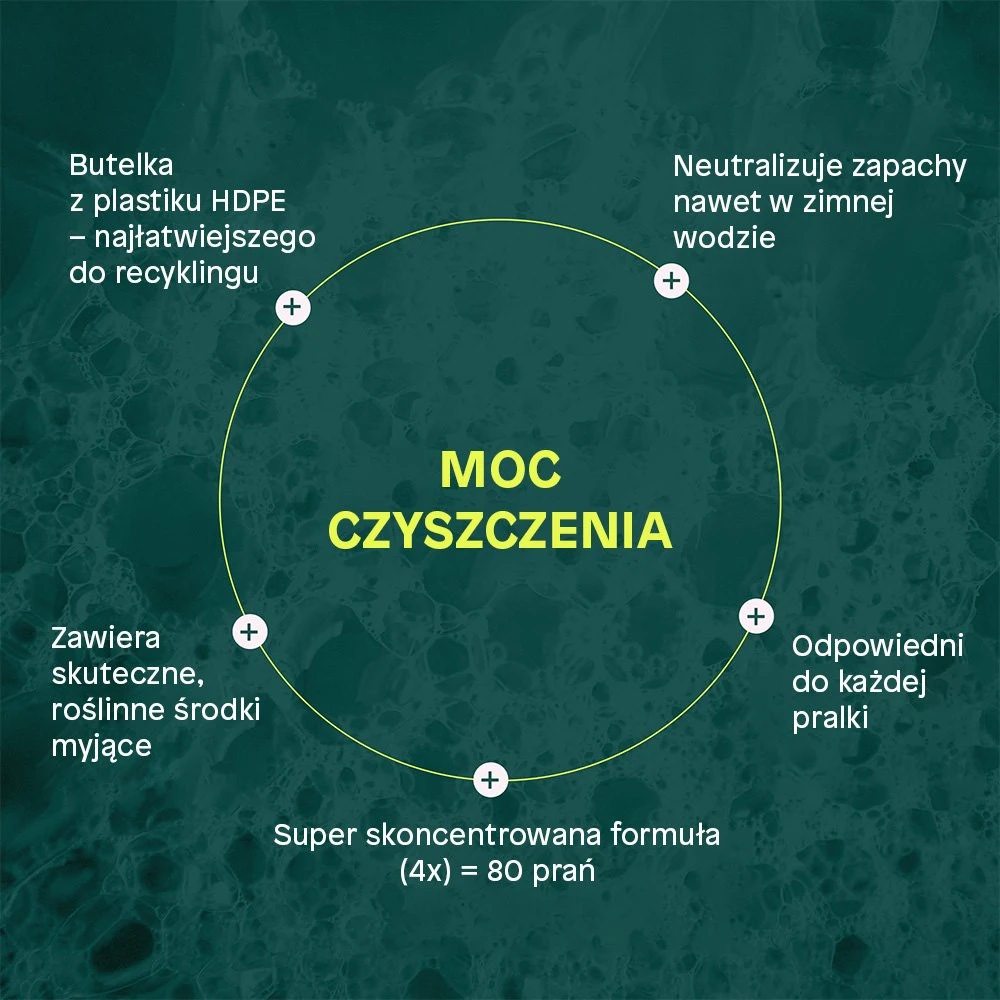 Sposób użycia: Użyj 1-2 nakrętek w zależności od ilości prania. Przy trudnych zabrudzeniach nanieś bezpośrednio na plamę