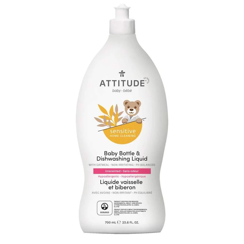 Bardzo skuteczny naturalny środek do mycia naczyń, przeznaczony jest do czyszczenia butelek, odciągaczy pokarmu, garnków i naczyń, z których korzysta dziecko. Tak samo jak w innych produktach marki Attitude, możesz mieć pewność, że i ten zawiera tylko składniki bezpieczne dla naszego zdrowia. Bardzo delikatny także dla Twojej skóry, która pozostanie gładka. Świetnie sprawdza się także do mycia naczyń całej rodziny. Potrafi usunąć także tłuszcz i spaleniznę
