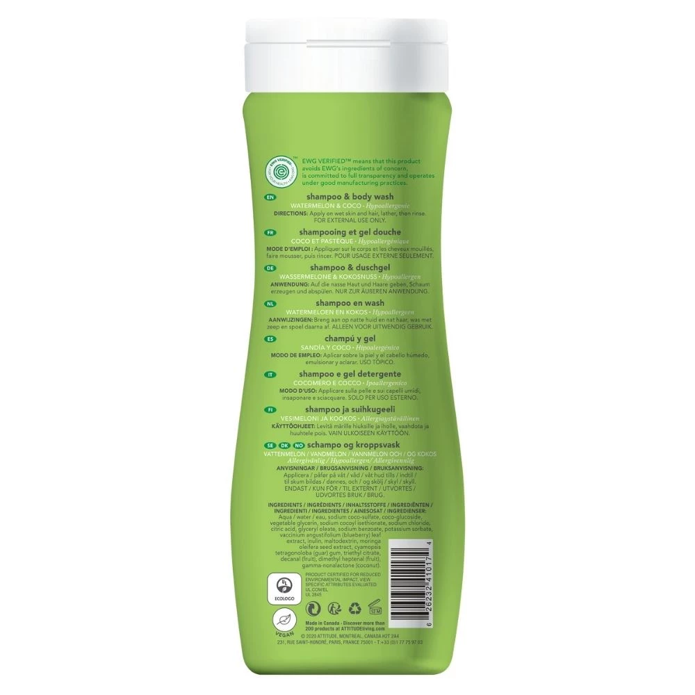Attitude, Little Ones, Płyn do mycia i szampon 2w1, Arbuz i Kokos, 473 ml