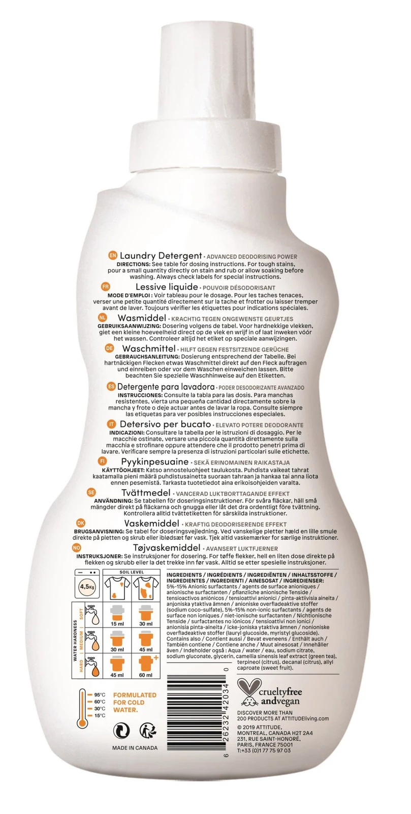 Attitude, Płyn do prania, Skórka Cytrynowa (Citrus Zest), 35 prań, 1050 ml