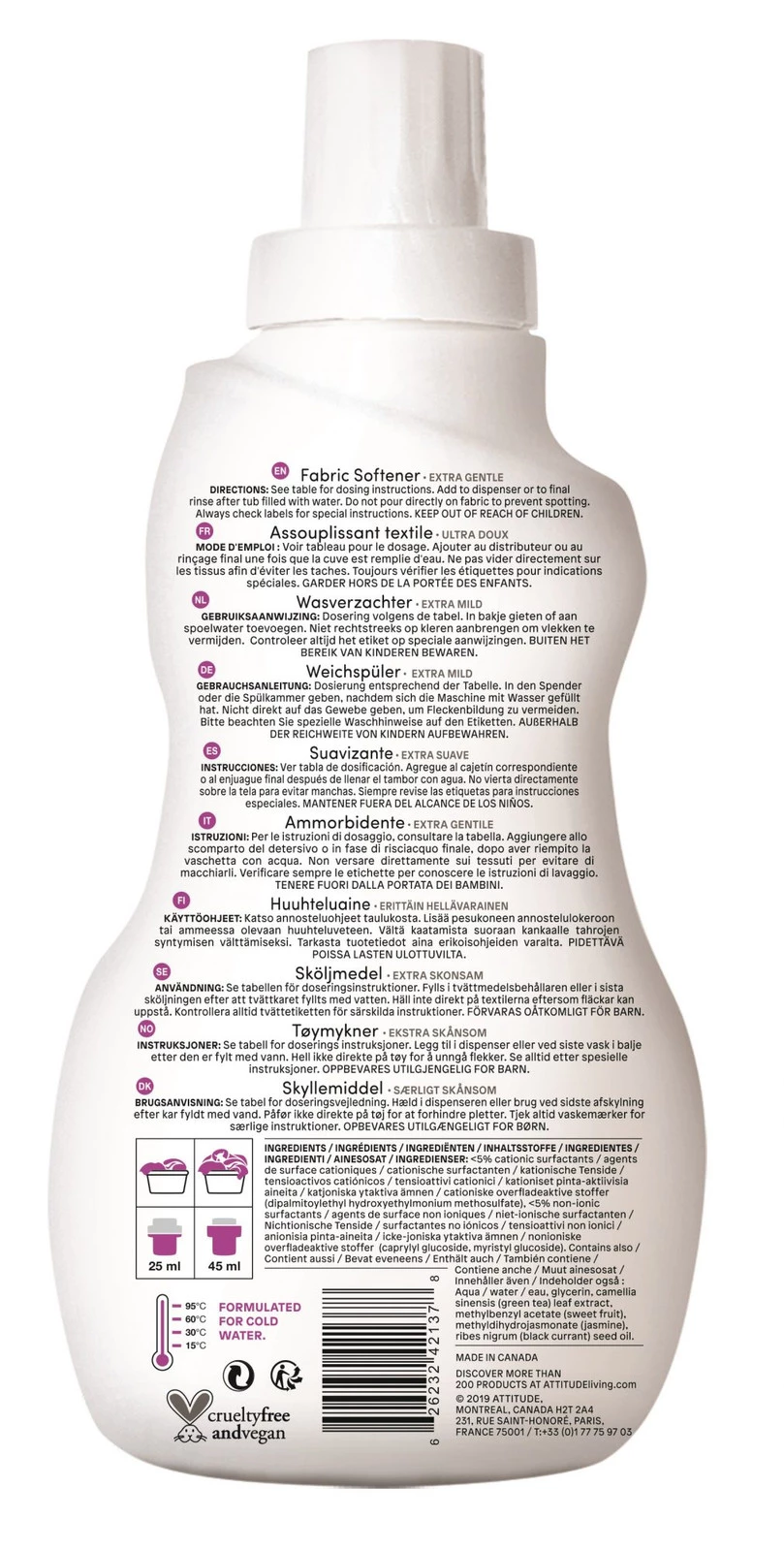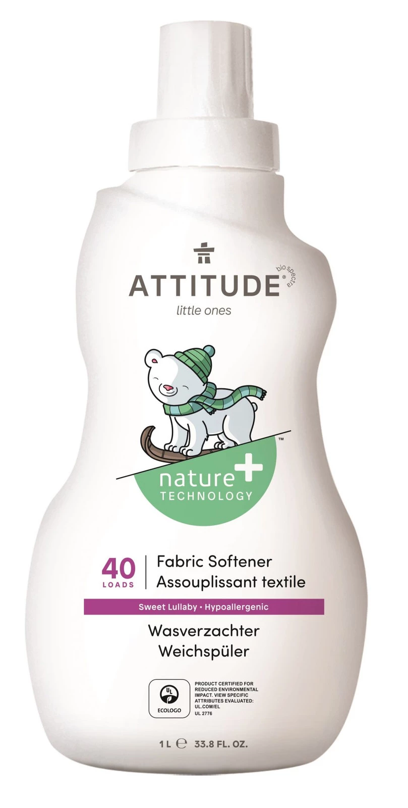 Attitude, Sweet Lullaby, płyn do płukania ubranek dziecięcych (1000 ml) powstał z troską o środowisko. Produkt ma kanadyjski ekologiczny certyfikat EcoLogo. Płyn do płukania ubranek dziecięcych nie zawiera zwierzęcego tłuszczu, a jedynie roślinne ekstrakty. Zapach płynu również jest pochodzenia naturalnego. Dzięki starannie dobranym składnikom płyn do płukania ubranek dziecięcych Attitude jest nie tylko przyjazny środowisku i biodegradowalny, ale też skuteczny.