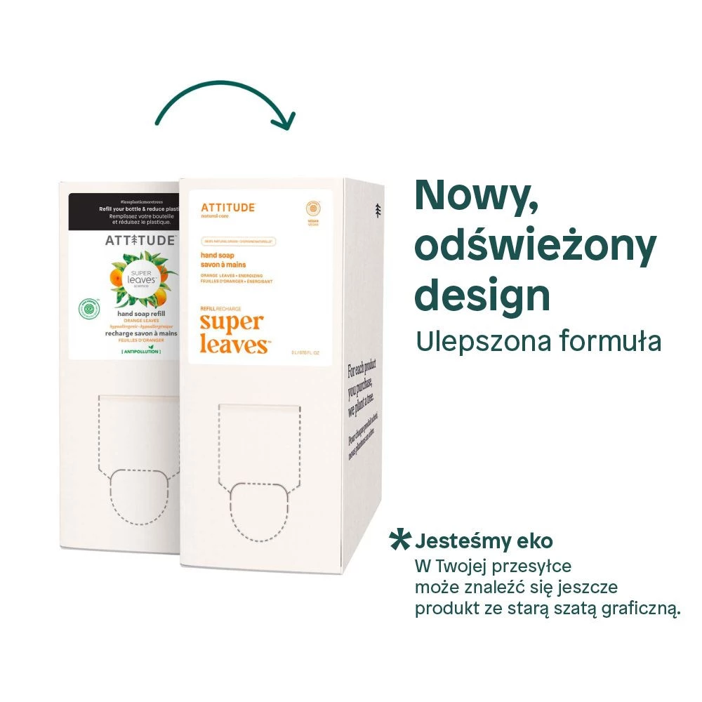 Attitude SUPER LEAVES™, Zapas mydła do rąk w płynie, Liście pomarańczy, 2 L