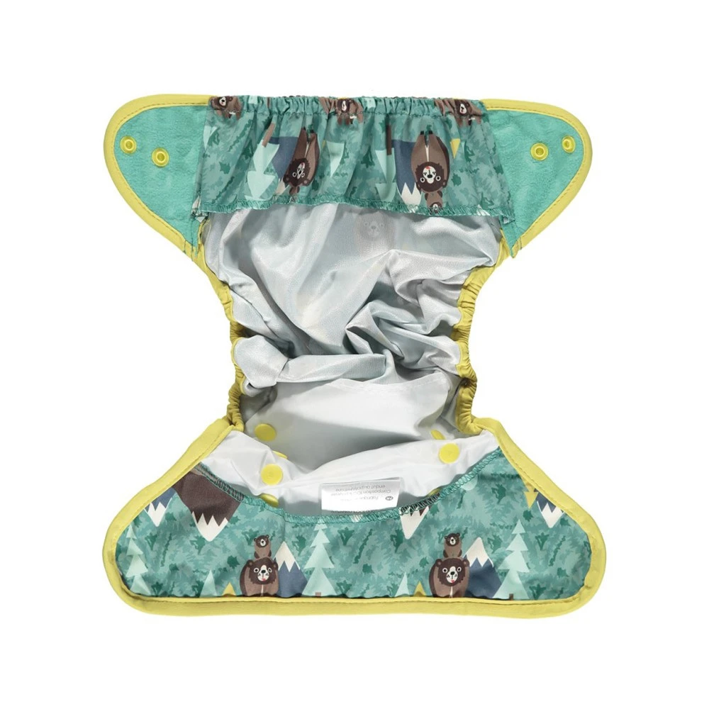 Podobnie jak nasze pieluchy, nasze otulacze są idealne na dzień i na noc, dzięki słynnemu, nieprzeciekającemu podwójnemu klinowi przy nogawkach. Są wystarczająco obszerne, aby zmieściły się nawet na najbardziej masywnym dwuczęściowy system pieluszek. Zapięcie na haczyk i pętelkę oraz elastyczne wypustki ułatwiają zapewnienie wygodnego, miękkiego dopasowania za każdym razem.