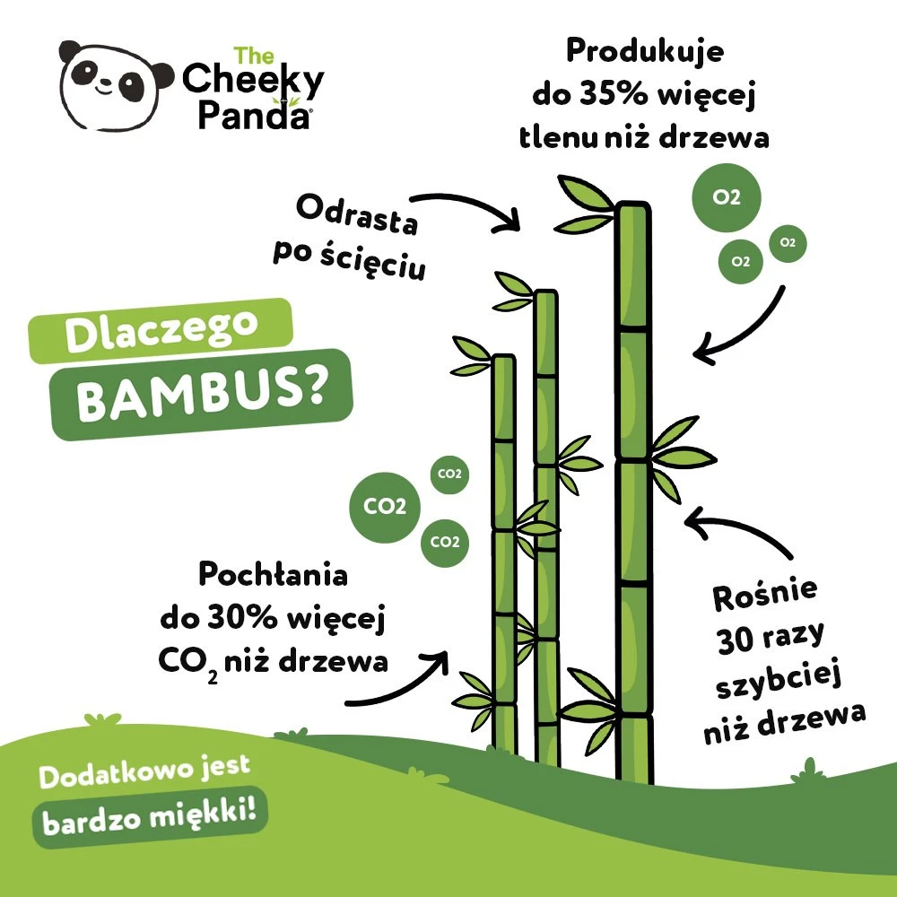 To najbardziej ekologiczne jednorazowe chusteczki na świecie! Produkowane wyłącznie z trawy bambusa – rośliny, którą nie żywią się pandy, rosnącą z dala od ich naturalnych skupisk. Jedyne wyroby papierowe z certyfikatem FSC 100%.