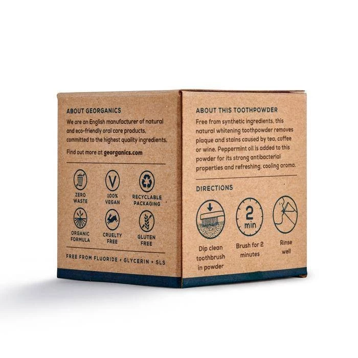 Ekologiczne podejście do produkcji to jeden z najważniejszych filarów działalności marki. Produkty od Georganics są wolne od jakichkolwiek syntetycznych składników, zwłaszcza fluoru, SLS czy gliceryny. Ich działanie opiera się na naturalnych właściwościach roślin, które wykazują działanie wybielające, kojące i łagodzące podrażnienia. Certyfikat PETA stanowi potwierdzenie tego, że produkty marki Georganics nie są testowane na zwierzętach.