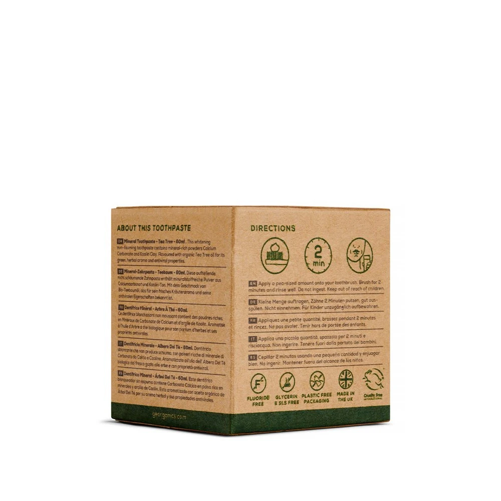 Georganics, Mineralna pasta do zębów w słoiku, bez fluoru, do codziennej pielęgnacji, smak drzewa herbacianego, 60 ml