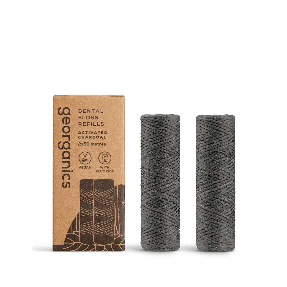Georganics, Naturalna nić dentystyczna, do codziennej pielęgnacji, z aktywnym węglem i fluorem, 100 m
