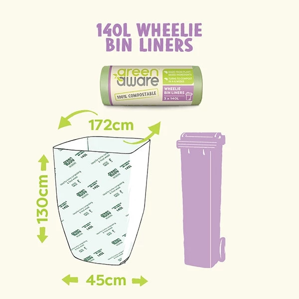 GreenAware − Kompostowalne worki na odpady spożywcze,140L − 3 szt.
