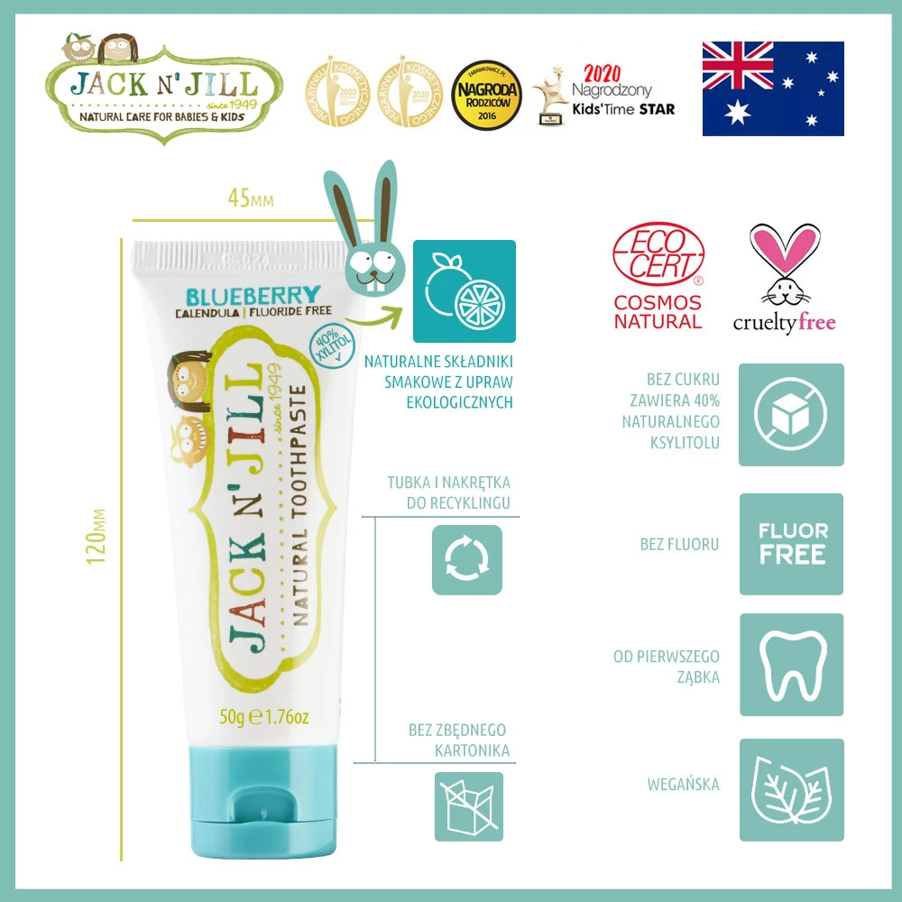 Jack N' Jill − Blueberry, naturalna pasta do zębów z xylitolem − 50 g