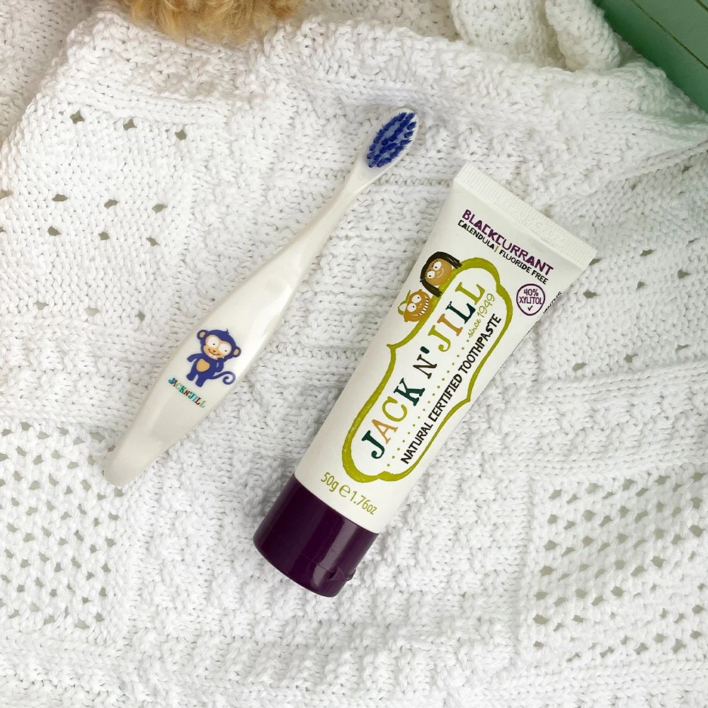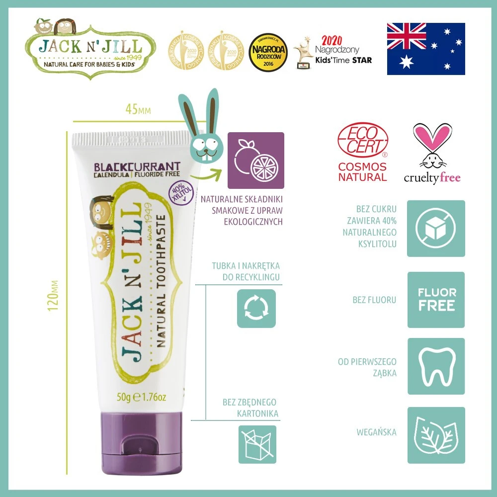 Jack N' Jill, Naturalna pasta do zębów dla dzieci o smaku czarnej porzeczki bez fluoru, 6m+, 50 g