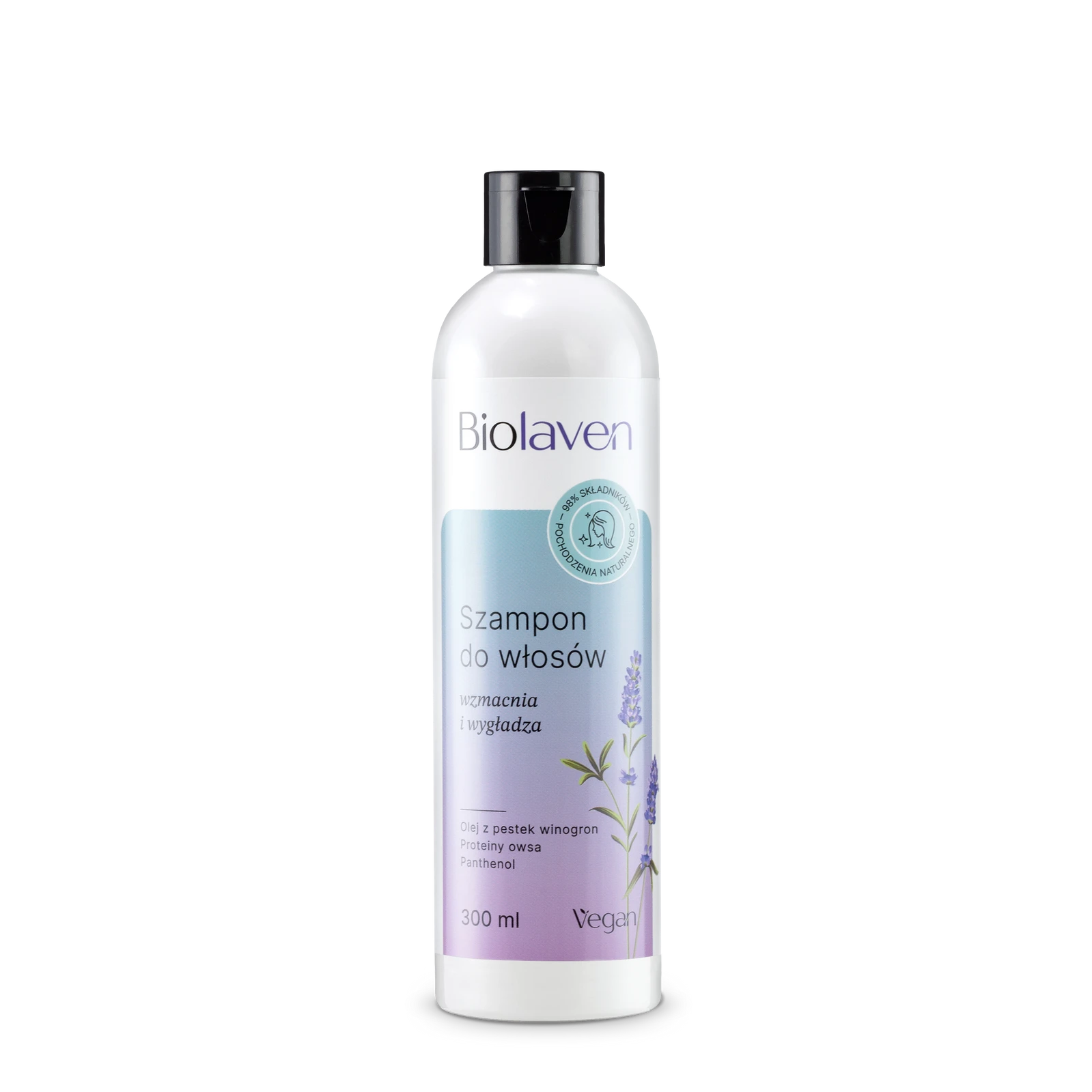 Wzmacniająco-wygładzający szampon BIOLAVEN to produkt do codziennej pielęgnacji każdego rodzaju włosów, również przy wrażliwej skórze głowy. Delikatne środki myjące skutecznie usuwają zanieczyszczenia, nie powodując podrażnień ani przesuszenia. Szampon łączy działanie oleju z pestek winogron oraz olejku eterycznego z lawendy, dzięki czemu włosy są miękkie, gładkie i przyjemnie odświeżone.