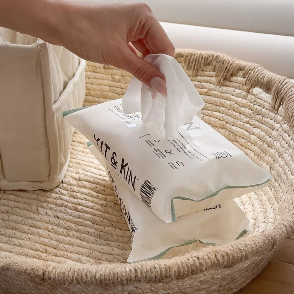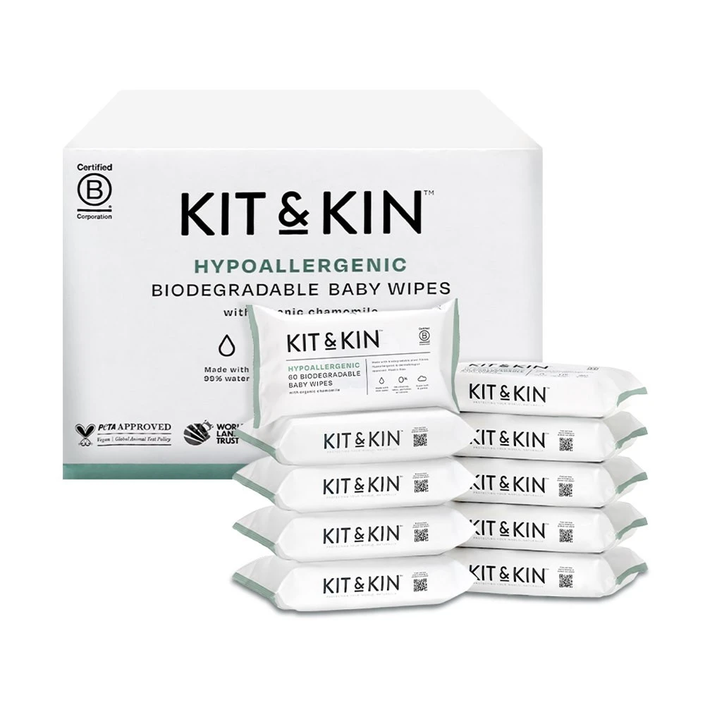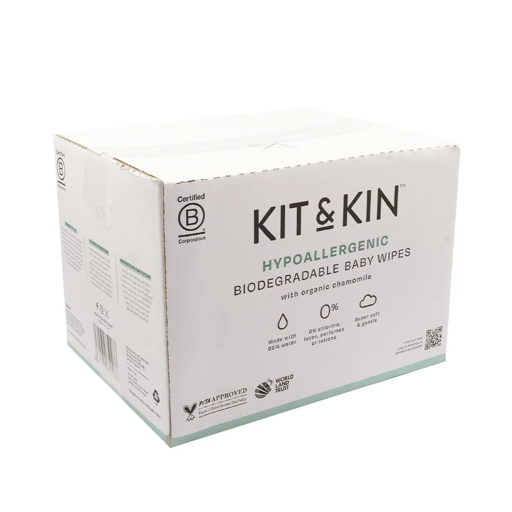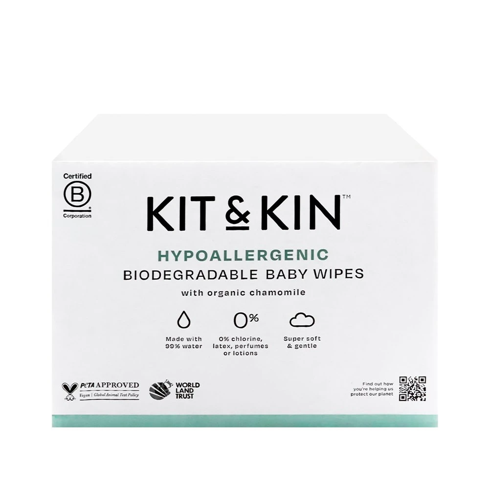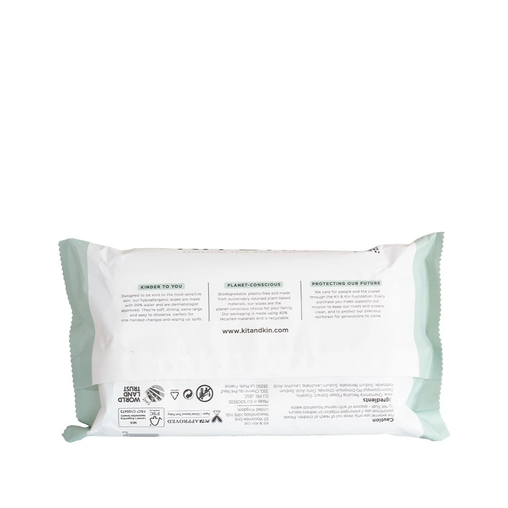 Kit & Kin również chroni środowisko. Nasze wyjątkowo miękkie, medyczne ściereczki są wykonane z włókien pozyskiwany w sposób zrównoważony, aby pomóc nam w uniezależnianiu się od nieodnawialnych zasobów i są całkowicie biodegradowalne, aby chronić przyszłe zasoby środowiska dla Twojego dziecka w przyszłości. Bez petrochemikaliów, chloru i ostrych chemikaliów! Opakowania wykonano z plastiku pozyskanego w 50% z odzysku. W całości nadaje się do recyklingu.