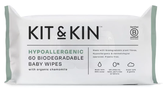 Kit and Kin, Biodegradowalne Bezzapachowe Chusteczki Nawilżane, 60szt