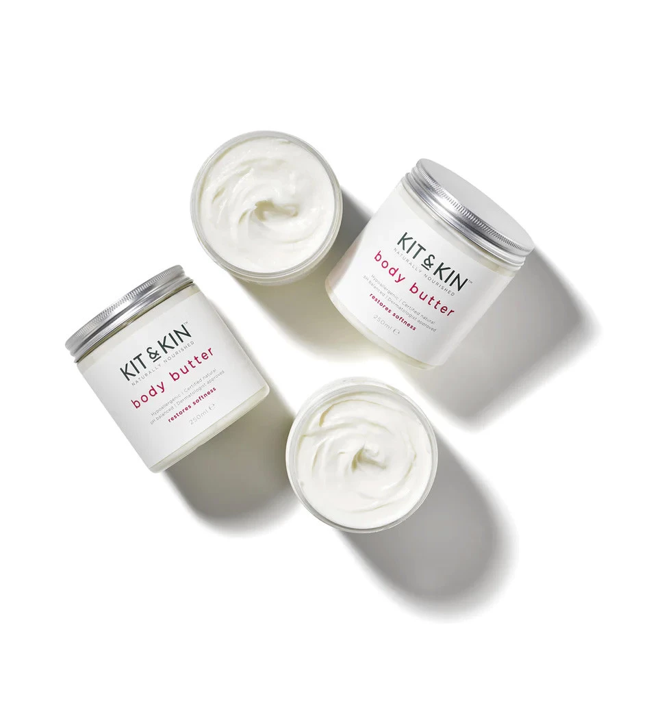 Przy pielęgnacji skóry dziecka staraj się unikać preparatów ze sztucznymi barwnikami, aromatami, konserwantami czy parabenami. Zasada jest prosta – im krótszy i prostszy skład, tym prawdopodobnie lepiej zareaguje skóra malucha. Produkty marki Kit and Kin zawierają takie składniki jak masło mango, masło kakaowe, masło shea czy olej jojoba.