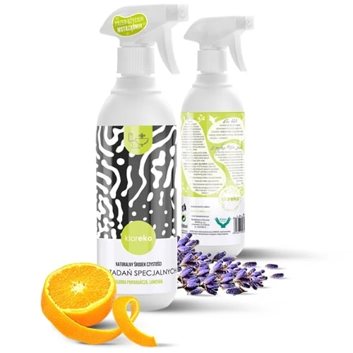 *zawiera olejek pomarańczowy (LIMONENE), olejek lawendowy (LINALOOL). Dokładamy wszelkich starań, by Kosmetyki Dla Domu KLAREKO były bezpieczne. Pomimo to, u niektórych osób uczulonych na poszczególne składniki, mogą występować reakcje alergiczne.