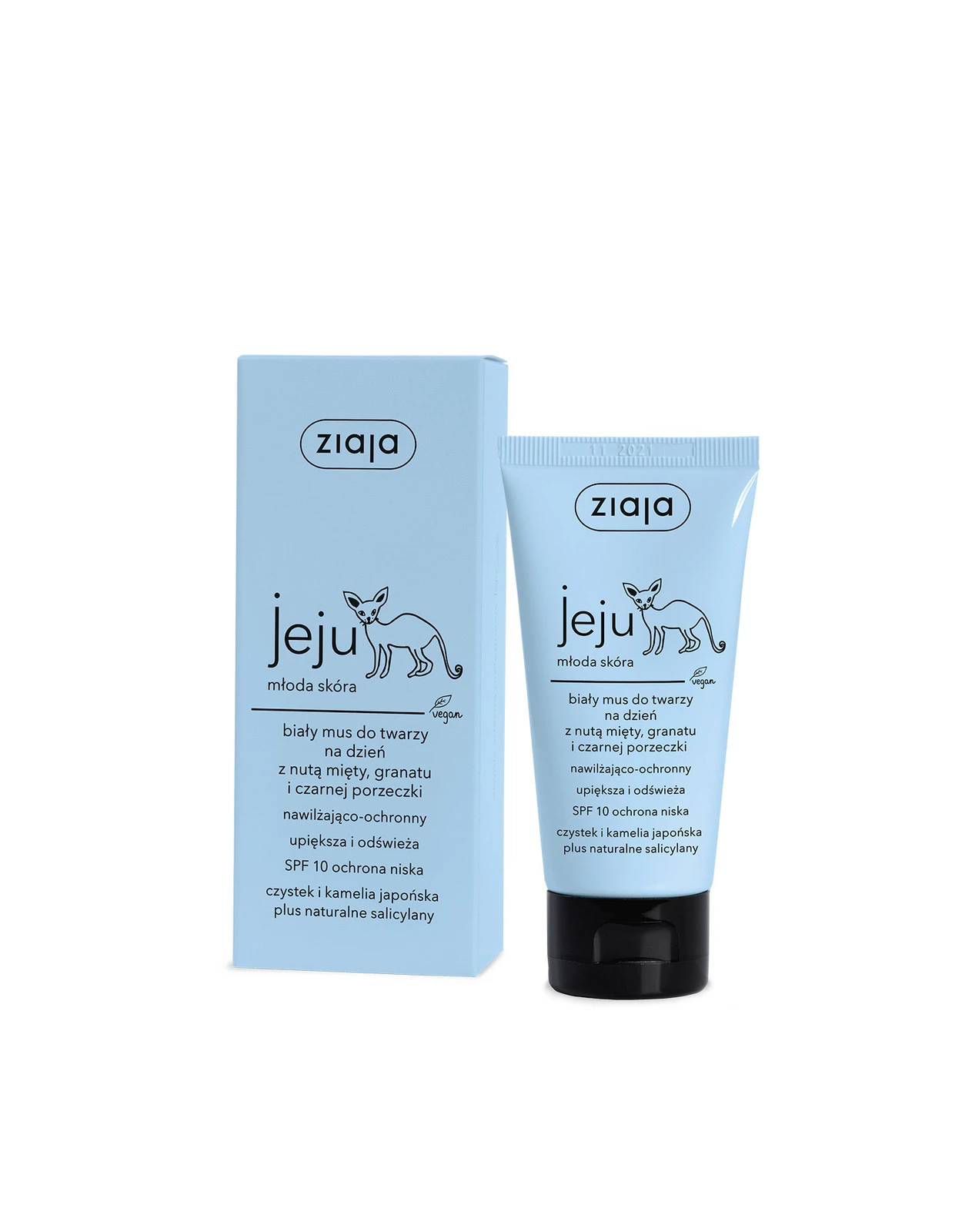 - Biały mus do twarzy z serii Jeju z filtrem SPF10. Skutecznie nawilża, chroni, łagodzi podrażnienia i ujędrnia skórę. Dobrze się rozprowadza i szybko wchłania. Nie zapycha porów skóry. Idealny jako baza pod makijaż.