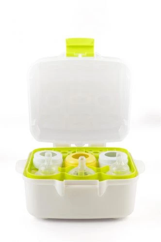 Sterylizator jest niezwykle wygodny do przechowywania nawet w najmniejszej kuchni. Zmieści się do każdej mikrofali.