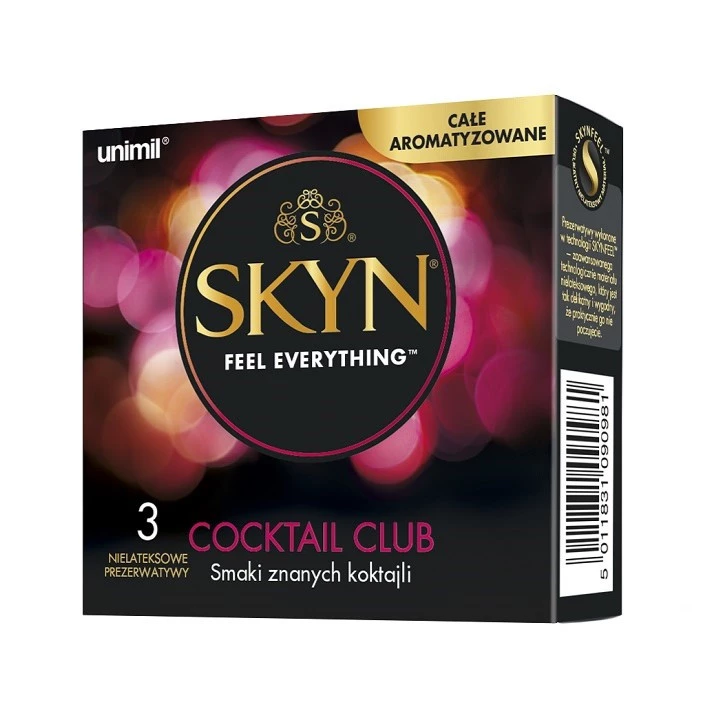 - Skyn Cocktail Club to nielateksowe prezerwatywy od marki Unimil.