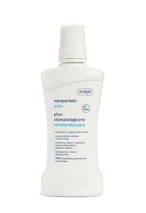 - Mintperfekt Activ to reminaluzujący płyn stomatologiczna do płukania jamy ustnej od marki Ziaja.