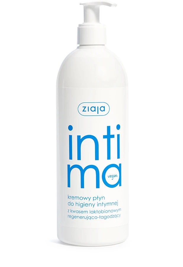 - Intima to kremowy płyn do pielęgnacji miejsc intymnych od firmy Ziaja. Wzbogacony o naturalny kwas laktobioniowy. Regeneruje i łagodzi podrażnienia skóry. Formuła pozbawiona substancji konserwujących i sztucznych barwników.