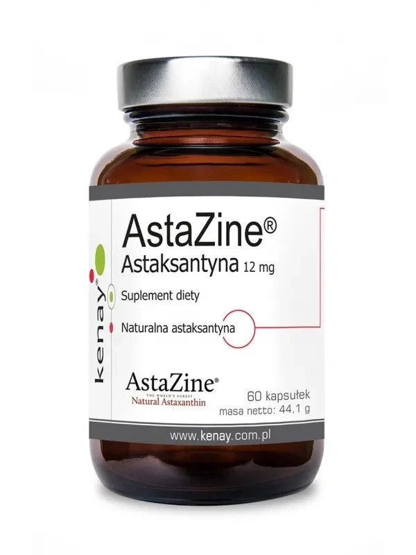 Kenay AstaZine to wyjątkowy suplement diety zawierający 12 mg astaksantyny w każdej kapsułce, naturalnie pochodzącej z mikroalg morskich.