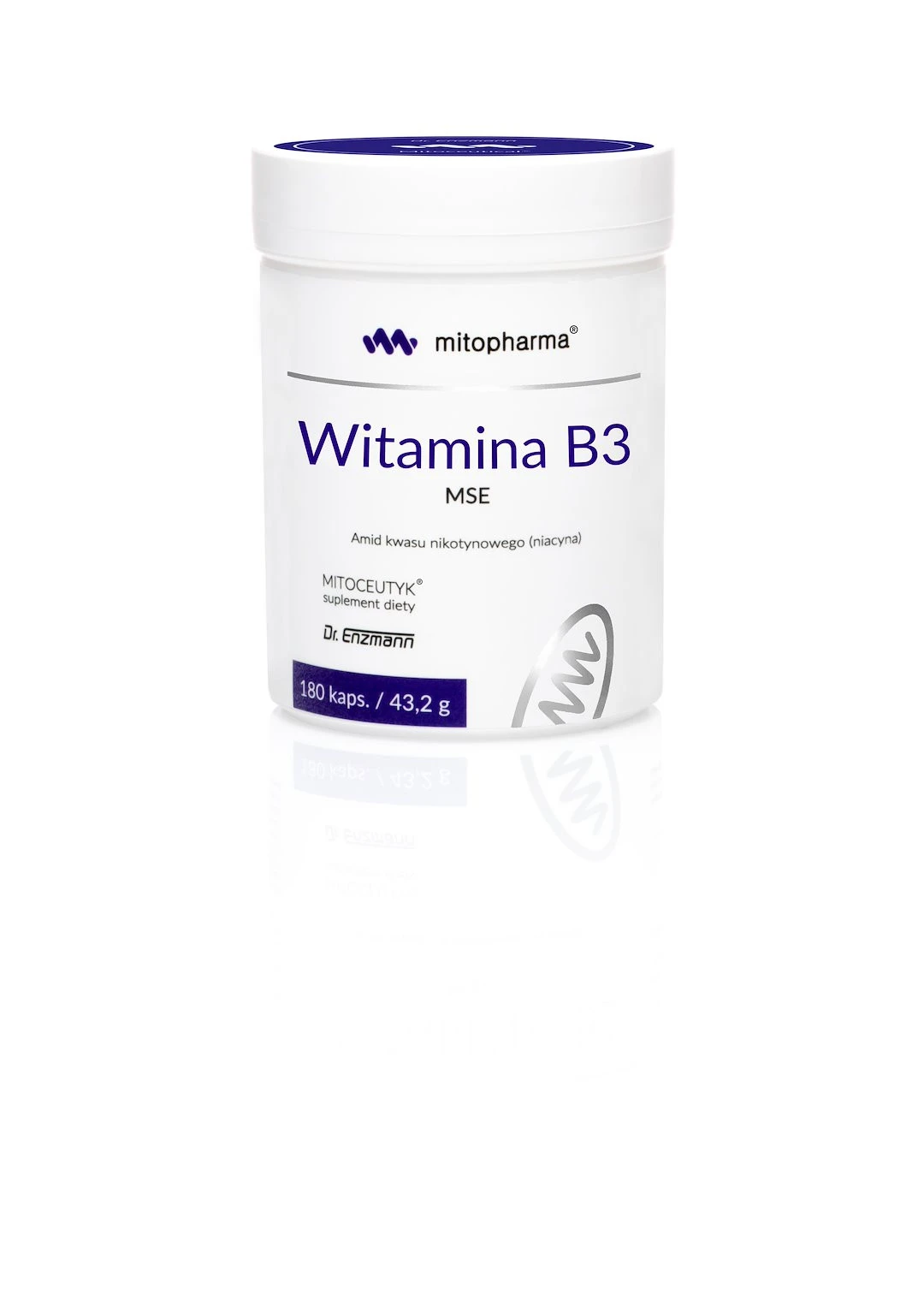 Witamina B3 MSE to preparat najwyższej jakości i czystości z jedną substancją czynną, niacynamidem kwasu nikotynowego.