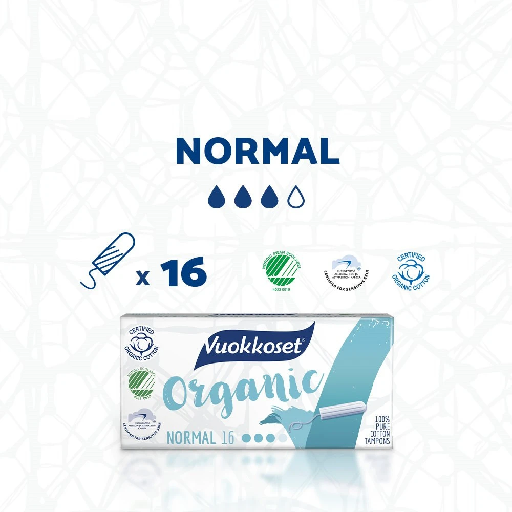 W 100% ekologiczne tampony Vuokkoset Normal. Są idealne dla osób z przeciętną intensywnością miesiączki.