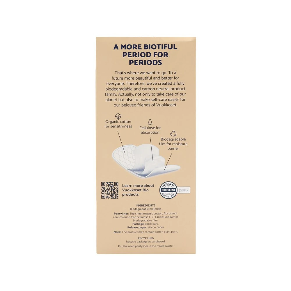 Vuokkoset BIO wkładki są naturalne, cienkie, gwarantują komfort użytkowania oraz poczucie świeżości na co dzień. To jak odmiana słowa “miękkość” przez wszystkie przypadki. Noszenie wkładek higienicznych to czysta przyjemność! Powierzchnia wkładki została wykonana bawełny organicznej, pochodzącej z certyfikowanych upraw. Wzięliśmy pod uwagę, że będzie miała kontakt z najbardziej intymnymi częściami kobiecego ciała! Do tego chłonne wnętrze, które pozwala skórze odetchnąć… W procesie jego tworzenia wykorzystaliśmy bieloną bez użycia chloru celulozę roślinną, pochodzącą z fińskich lasów zarządzanych według zasady zrównoważonego rozwoju.