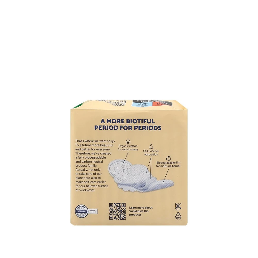 Podpaski Vuokkoset BIO Normal Wings są w pełni biodegradowalne. Lubimy proste rozwiązania i proste składy – dlatego nasze produkty wykończone są miękka warstwą bawełny organicznej. Ostatecznie najbardziej intymne części Twojego ciała zasługują na to, co najlepsze! W środku naszych naturalnych podpasek znajduje się chłonny wkład z celulozy roślinnej pochodzącej z fińskich lasów. Kiedy tworzy się coś doskonałego, należy postępować z tym delikatnie, dlatego do wybielania warstwy chłonnej używamy tlenu, a nie chloru i innych substancji chemicznych. Nasze podpaski BIO są cienkie, ekologiczne i wygodne. Pozwalają odetchnąć nie tylko skórze, ale i środowisku.