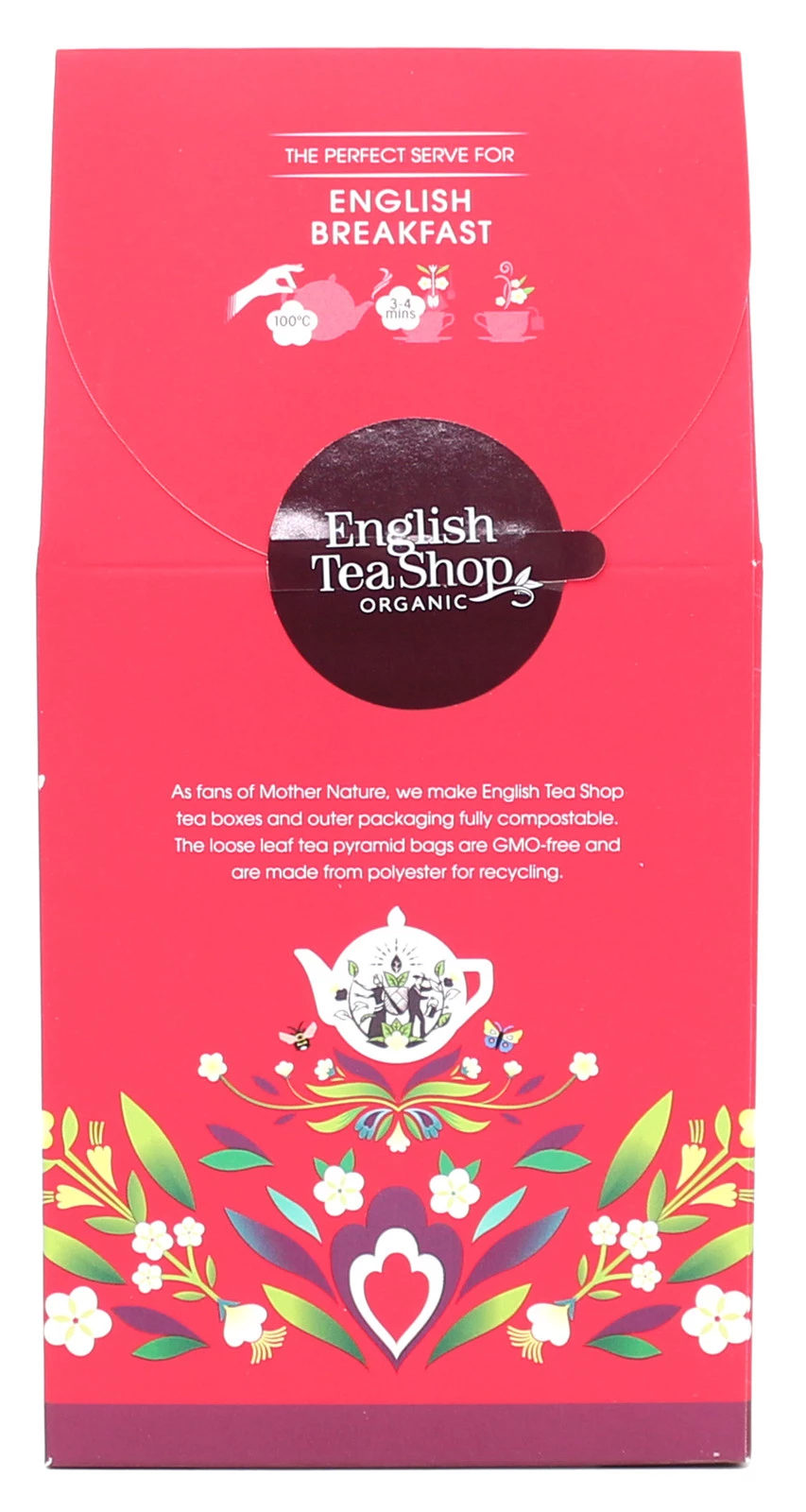 English Tea Shop to brytyjski producent herbat ekologicznych wytwarzanych z najwyższej jakości liści pozyskiwanych od rolników na całym świecie. Wszystkie herbaty powstają w fabryce na Sri Lance, w której do tej pory opracowano ponad 100 autorskich kompozycji smakowych. Marka pozostaje wierna idei zero waste, dlatego wszystkie jej produkty pakowane są w biodegradowalne pudełka podlegające w stu procentach recyklingowi. Ich kolorystyka różni się w zależności od smaku danej herbaty.