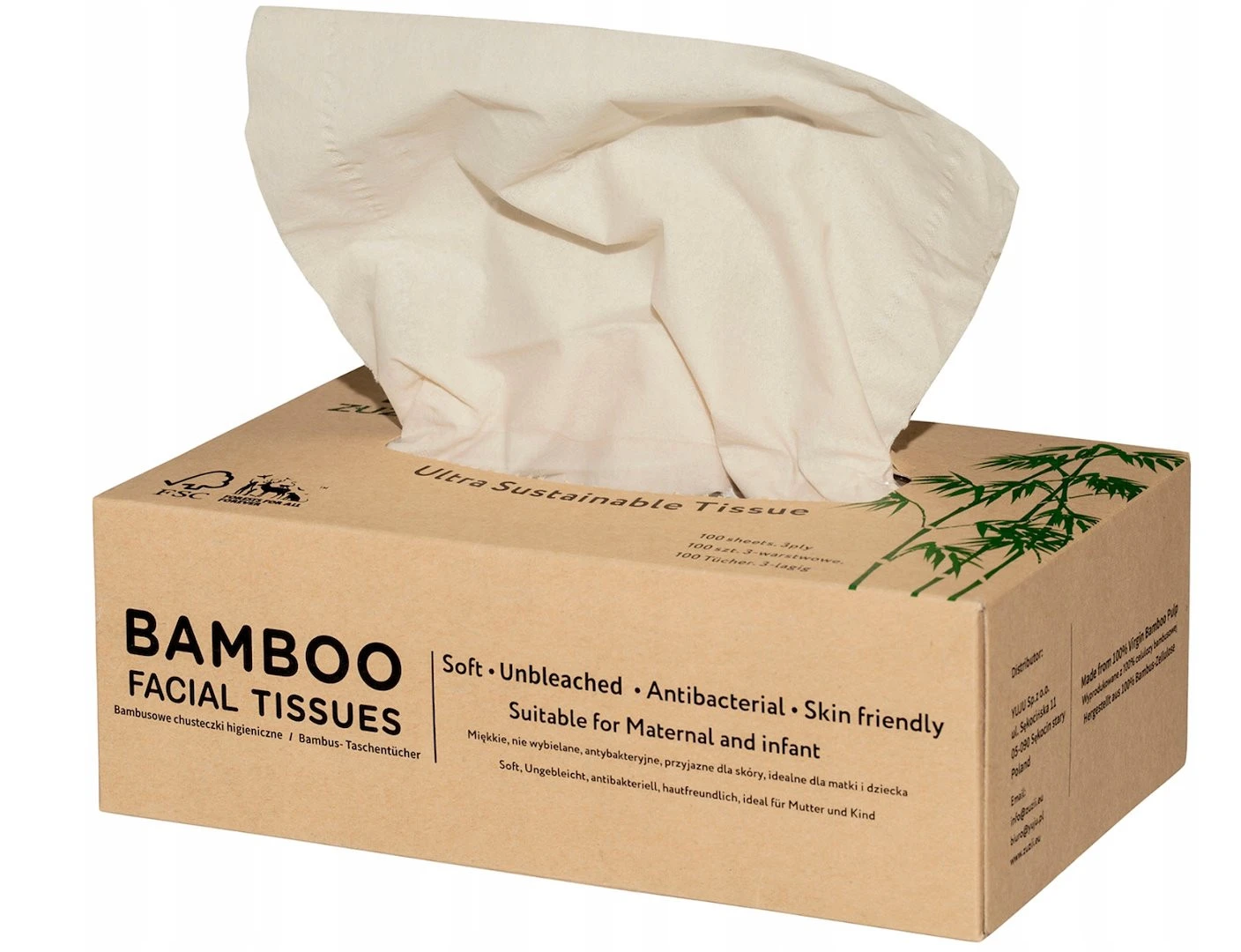 Bambusowe chusteczki 3-warstwowe w kartoniku ZUZii są miękkie i w pełni komfortowe dla skóry. Posiadają certyfikat FSC 100%, który przyznany zostaje jedynie produktom wykonanym całkowicie ze źródeł odnawialnych.