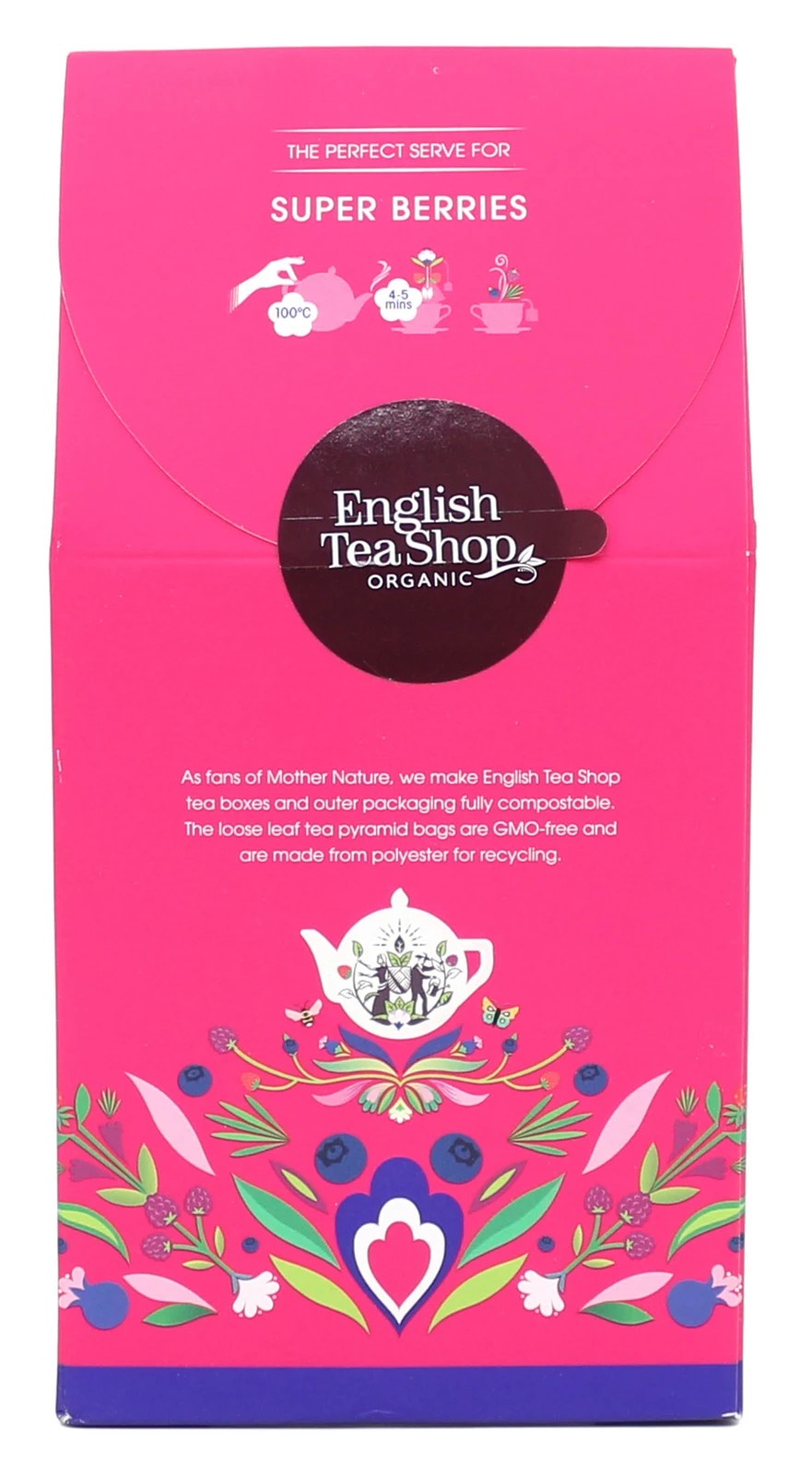English Tea Shop to brytyjski producent herbat ekologicznych wytwarzanych z najwyższej jakości liści pozyskiwanych od rolników na całym świecie. Wszystkie herbaty powstają w fabryce na Sri Lance, w której do tej pory opracowano ponad 100 autorskich kompozycji smakowych. Marka pozostaje wierna idei zero waste, dlatego wszystkie jej produkty pakowane są w biodegradowalne pudełka podlegające w stu procentach recyklingowi. Ich kolorystyka różni się w zależności od smaku danej herbaty.